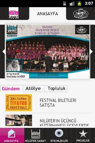 Bursa Nilüfer Belediyesi belediyenin kurumsal mobil uygulaması yanında, kültür sanat faaliyetlerini içeren ayrı bir uygulama geliştirerek fark yaratmış.